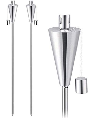 - 2 antorchas de acero inoxidable con 4 mechas de fibra de vidrio (2 mechas de repuesto). Antorcha de jardín ideal para uso en exterior, de larga duración, robusta y con gran tanque de 270 ml.