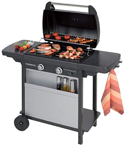 Campingaz Xpert 100 L Plus Rocky Barbacoa Gas para Piedra Volcanica, BBQ gas con 2 quemadores, 7.1kW de potencia, 2 Parrillas de acero cromado, 2 mesas laterales y rocas de lavaCampingaz 2 Series Classic LX Vario Barbacoa a Gas, BBQ con