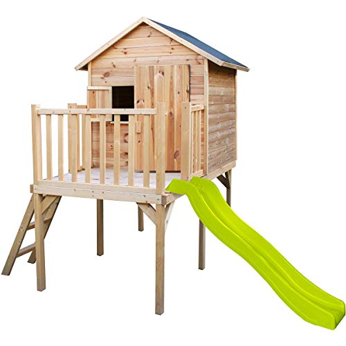 - ?? 2 en 1? Para más diversión y deslizamientos, esta caseta de madera para niños de exterior dispone de un tobogán para todas las edades.