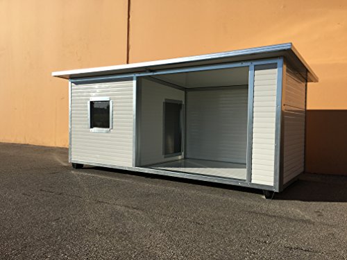 - Patas de altura regulable: recubierto de plástico para ayudar a proteger de la humedad y garantizar la estabilidad. Elevado del suelo: para proteger del frío y la humedad del suelo, así como permitir una buena circulación de aire alrededor de la perrera.