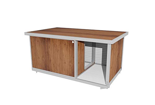 - La casa ideal para tu mascota en cualquier estación: resistente a cualquier tipo de clima, tratada con barnices atóxicos a base de agua e inodoros para respetar la salud de tu perro