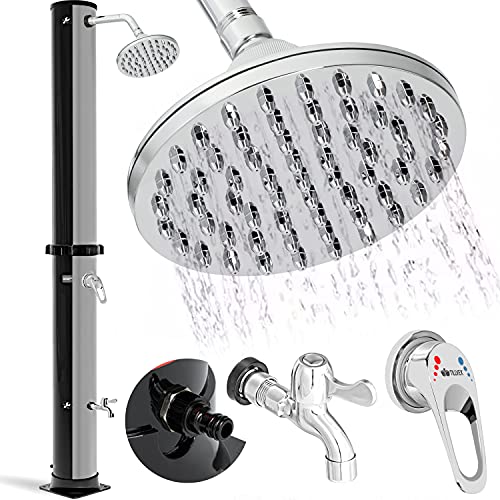 tillvex Ducha de Jardín 20 litros | Ducha Solar con Agua Caliente | Para Piscina, Camping | Sin Conexión Eléctrica | Cabezal de Ducha de Lluvia y Grifo | Conexión de Manguera de Jardín Negro/PlateadoQdreclod 215 CM Duchas de Jardín Ducha Solar de Exterior 18