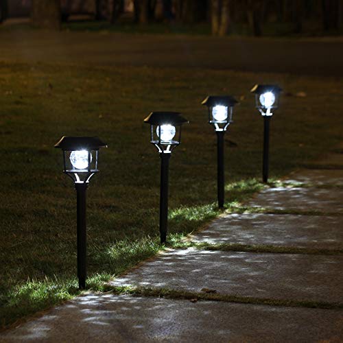 - ãAlta calidadã Las luces de jardÃn con energÃa solar pueden brillar hasta 8 horas y proporcionar un brillo de iluminación claro, ya que están hechas de paneles solares de polisilicio, baterÃas recargables y plástico PVC resistente a la corrosión.