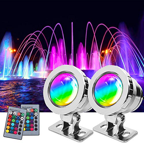 BLOOMWIN 2pcs Lámpara Subacuática 10W LED Luz con Control Remoto 4 Modos RGBW Cambio de Color IP68 Foco Iluminación de Piscina Proyector Sumergible para Estanques Fuentes Piscina Acuarios JardínAnkway Luces solares focos para estanques (Paquete de 3), So