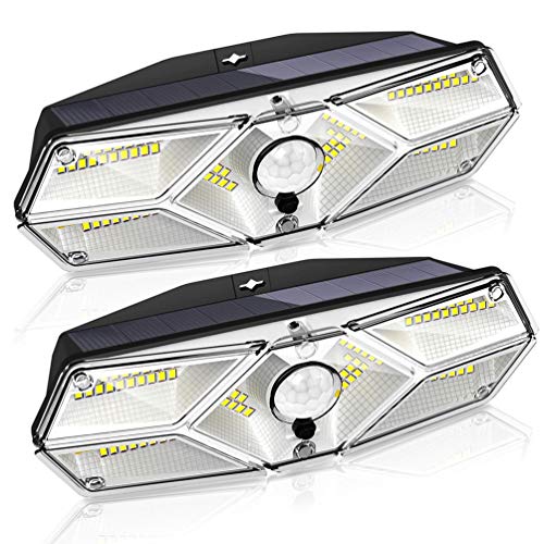 Luces solares al aire libre luces de seguridad solar, GECOTY【2 piezas】104 LED sensor de movimiento inalámbrico IP65 Luces exteriores impermeables para jardín, patio, puerta principal, garajeLuz Solar Exterior, JESLED 3 modos de iluminación Luz solar