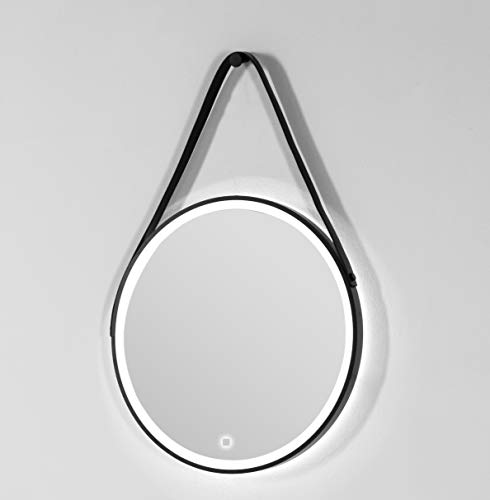 Espejo con iluminación LED Ambiental perimetral 15W. Correa Cuero para Colgar. ip44, 6500k. Redondo 60cm Altura por 60cm AnchoLong Life Lamp Company doble hacia arriba y abajo al aire li