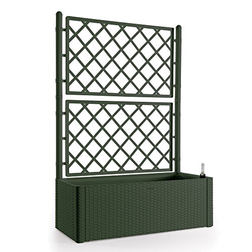 STEFANPLAST 96156-08 - Jardinera rectangular con respaldo, Marrón Oscuro, 80 ltStefanplast stf703 Jardinera Deluxe con espaldera, Verde