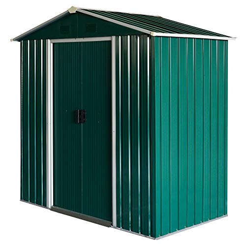 - ✅RESISTENTE: Cobertizo fabricado en acero lacado de color, con recubrimiento protector para protegerlo de los rayos UV y la intemperie. Los bordes del techo y el marco de la puerta en contraste de color blanco ofrecen un aspecto moderno al cobertizo