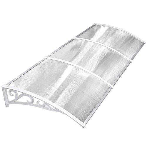 MVPOWER Marquesina para Puertas y Ventanas Tejadillo de Protección Toldo Cubierta de Policarbonato en Jardín al Aire Libre Dosel de Techo (270 * 98.5cm, blanco)Arco de jardín, pérgola de jardín con puerta soporte de r