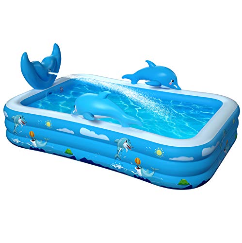 - DISEÑO DE PISCINA Y ASPERSOR 2 EN 1: Esta piscina inflable está equipada con un aspersor para niños, los niños pueden divertirse más jugando con agua cuando el agua sale a chorros. Este juguete de verano crea océanos de aventuras para los niños y la familia.