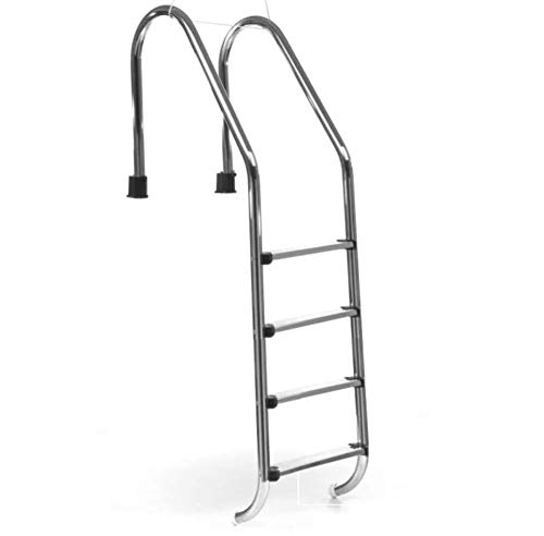 - 💧 MATERIALES DE ALTA CALIDAD: La escalera está hecha de acero inoxidable e incluye 4 escalones. Los tubos tienen un diámetro de 43 mm y una profundidad máxima de 140 cm. Esta es una escalera sólida y estable y tiene una capacidad de carga de 170 kg.