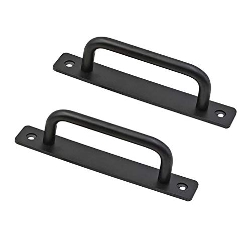 - Fácil de instalar: El tamaño grande es fácil de agarrar y puede aumentar el espacio libre para las manos. Incluye accesorios de instalación. El kit incluye una manija de puerta de granero negra y tornillos de montaje para fijar a madera u otras superficies planas.