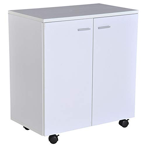 HOMCOM Mesa Armario Movil Mueble TV de Madera con Ruedas y 2
