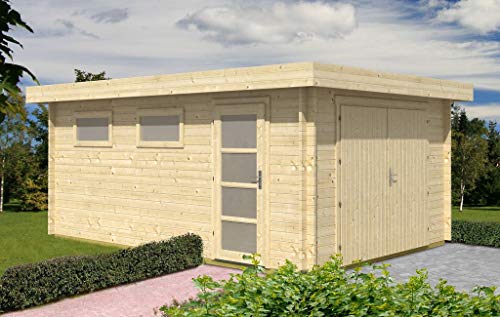 Alpholz Garaje de madera con techo plano, modelo C-70 ISO, 70 mm de grosor de pared (380 x 568 cm)Garaje de Madera Mikhail I 16,78 m² Exterior 516x324x192/22